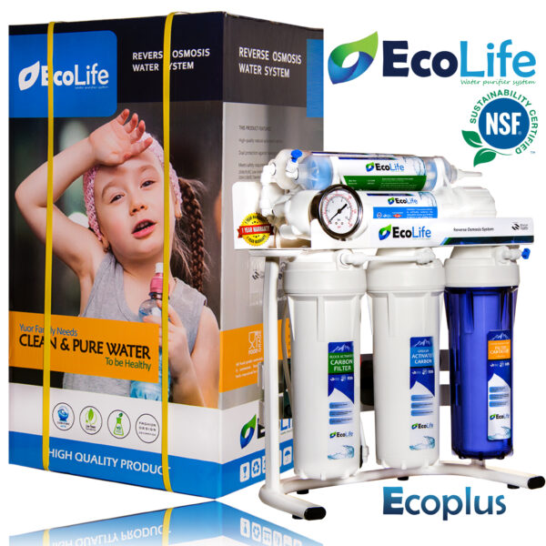 دستگاه تصفیه آب اکولایف EcoLife  یکی از بهترین برندهای روز در تصفیه آب است که هم سابقه بسیارخوبی دارد و هم دارای کیفیت بسیار بالایی نیز می باشد. اگرخواهان یک دستگاه تصفیه آب باکیفیت و با دقت عملکرد بالا هستید میتوان به جرات گفت که دستگاه تصفیه آب اکولایف می تواند بهترین گزینه برای خرید آب شیرین کن خانگی باشد. دستگاه تصفیه آب اکولایف دارای سیستم اسمزمعکوس Ro است و با بهره گیری از فیلترهای باکیفیت که همه گی دارای استانداردهای NSF هستند می توانند تا ریز ترین آلایندگی های موجود در آب را به خوبی از آب جذب نمایند.